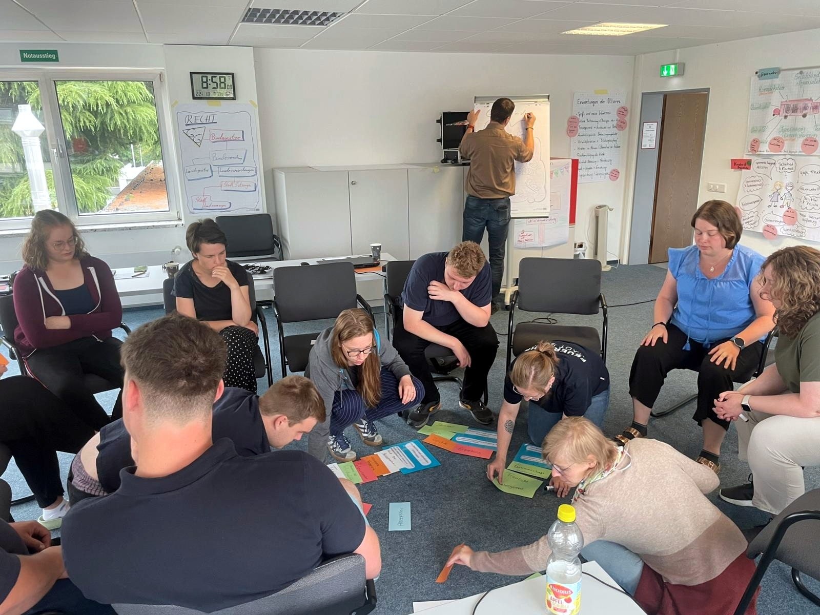 Der Samstag stand ganz im Zeichen der Vertiefung rechtlicher Kenntnisse (u. a. JuSchG und SGB VIII), der Struktur der Jugendarbeit sowie der Aufgaben und Pflichten eines Jugendgruppenleiters. Besonders praxisnahe Inhalte wie Aufsichtspflicht, Kinderrechte, Strafrecht und der Umgang mit Führungszeugnissen wurden ausführlich behandelt. Am Abend ging es um Kommunikation, Führungsstile und Feedbackmethoden – essenzielle Werkzeuge für eine erfolgreiche Gruppenleitung.