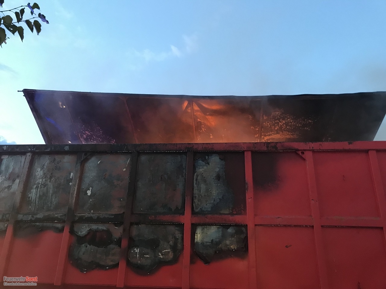 Es brannten 2 große (26 Kubikmeter) Abfallcontainer. Diese wurden zunächst so gut wie möglich gelöscht, dann mit feuerwehreigenen Wechselladerfahrzeugen aufgenommen und auf dem Parkplatz in sicherer Entfernung zum Gebäude entleert. Dort wurde das Brandgut mit dem Telelader auseinandergezogen und komplett gelöscht.